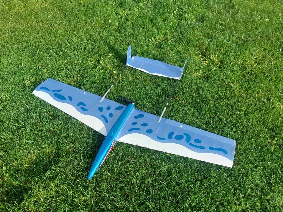 Premiers essais du Lumpia aujourd'hui. Le moteur brushless Spitz 2826/18 1000 kV est peut-être un peu juste car ça s'écroule au bout de quelques mètres. Il faudra essayer une autre hélice que la 9x4.8 qui charge peut-être un peu trop le moteur. Le poids est de 620 g avec un Li-Po 3S 1500 mAh. Hervé Belin 2 mars 2025