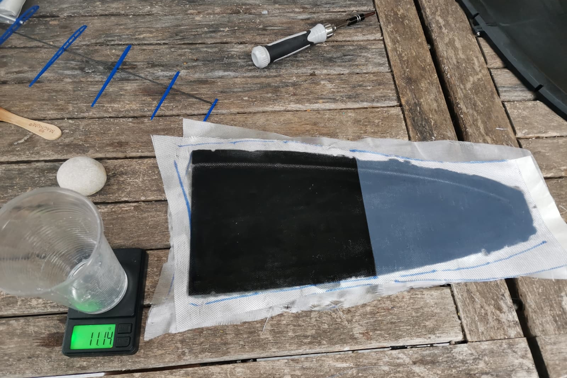 Je lamine ensuite 2 couches de tissus de verre, une