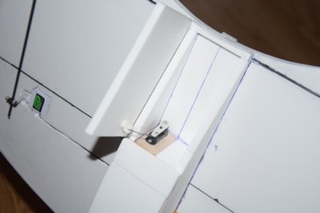 un servo de 4,5 g permet de manœuvrer la trappe de largage située