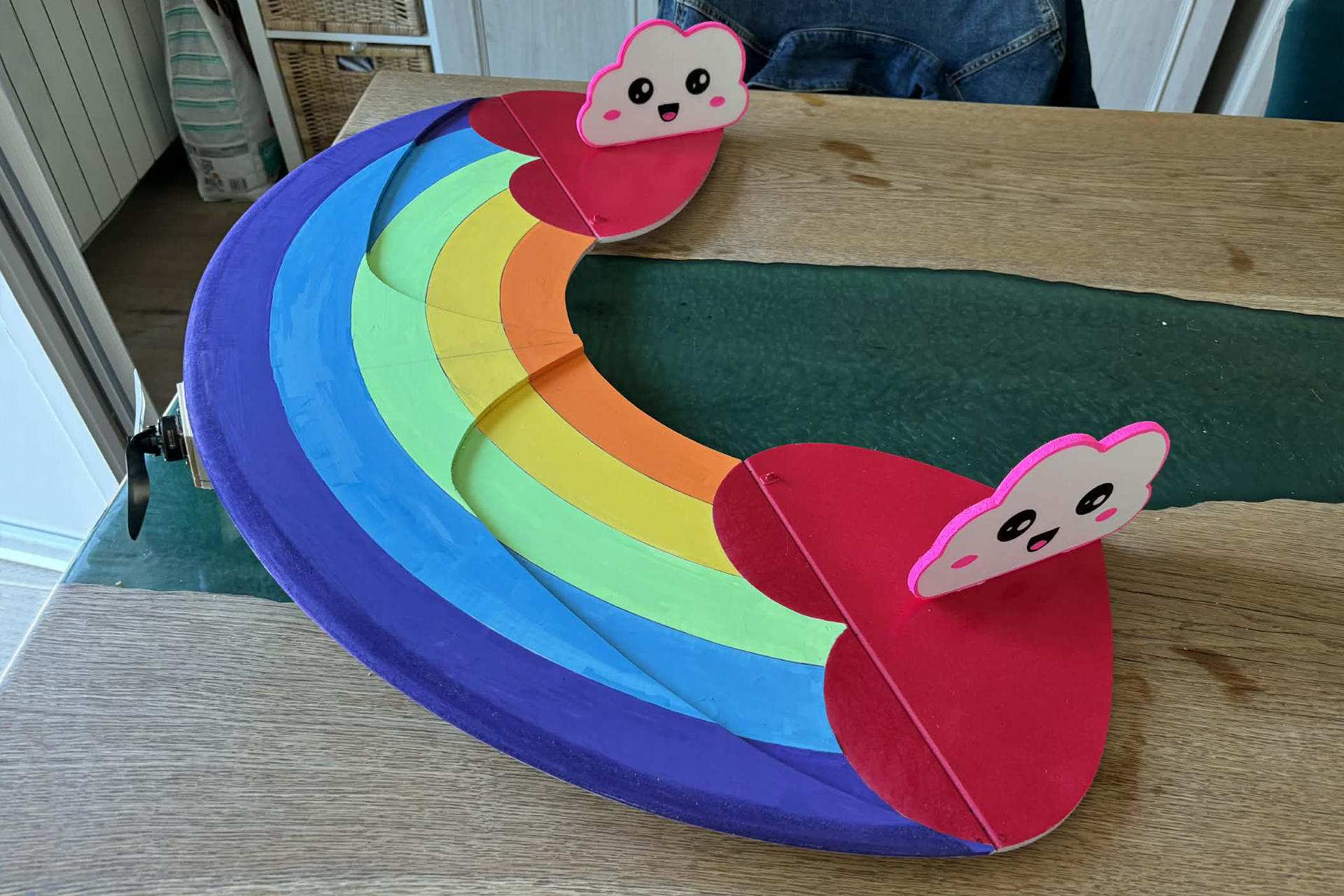 fils Quentin, créer un arc-en-ciel et y intégrer des cœurs