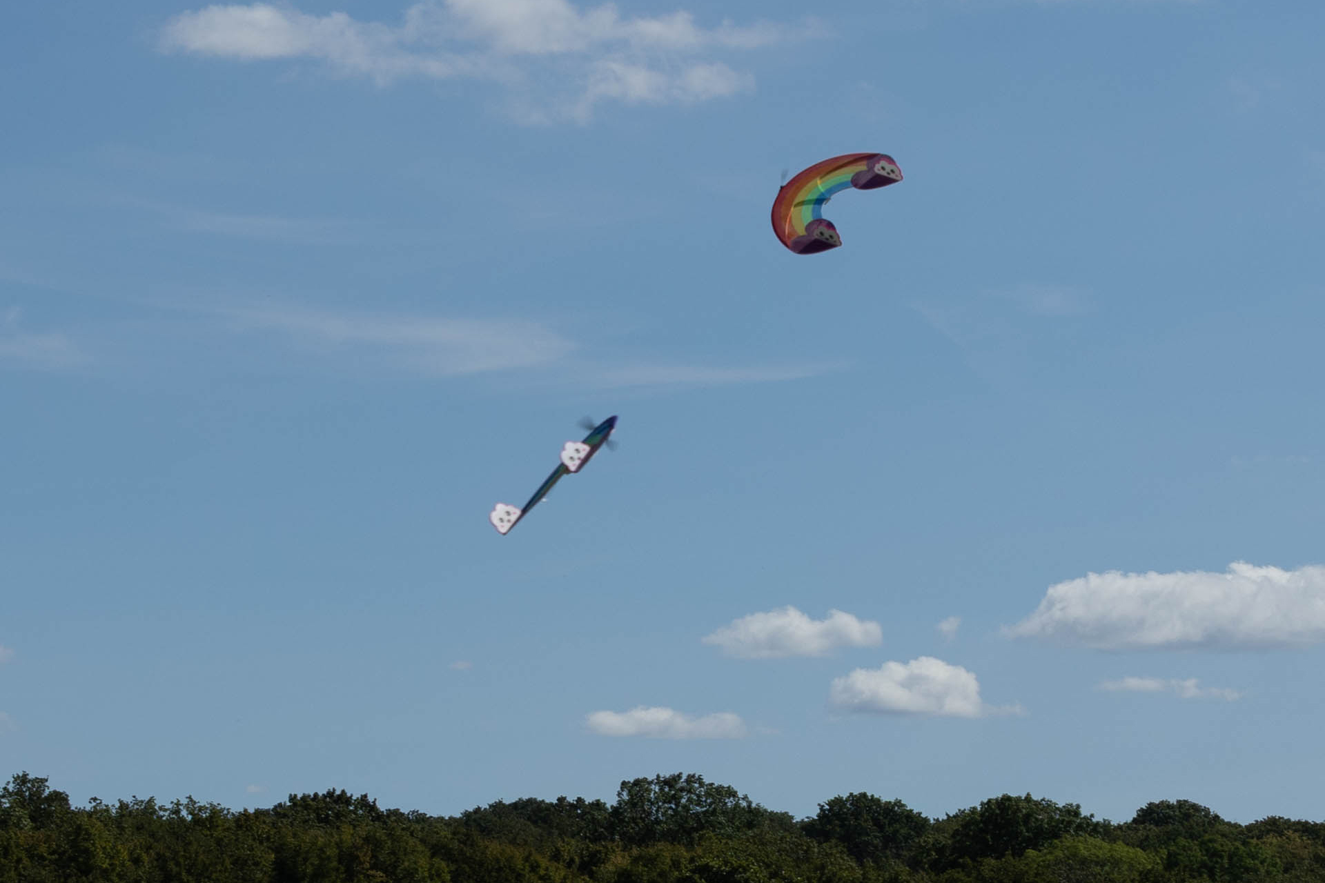 serrés, retournements, largage de confettis (le vent a dispersé