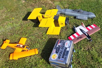 copains avec leurs avions, tous à l'échelle 1/4, présentés